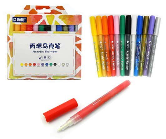 Маркер акриловый 12 цв. STA-15 1мм пулевидный, в к/кор №1100M (1/1/100)