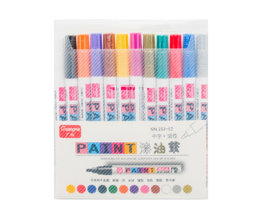 Маркер-краска 12 цв. WGN-8 круглый наконечник, 2мм, масляные, в упаковке ПВХ GN152 (1/6/120)