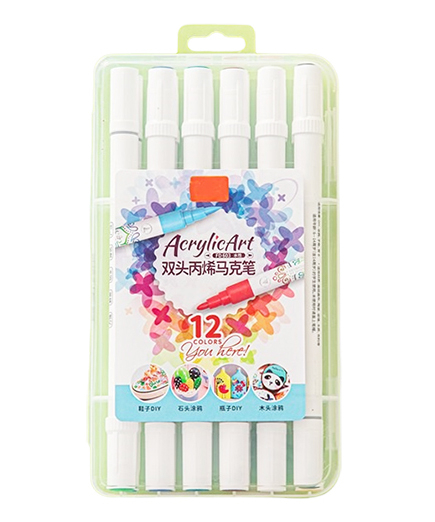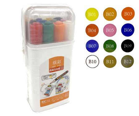 Маркер акриловый 12 цв. CZ-184 1-4мм, кисть/пулевидный, круглый белый корпус, в упаковке ПВХ №FD603 (1/24/144)