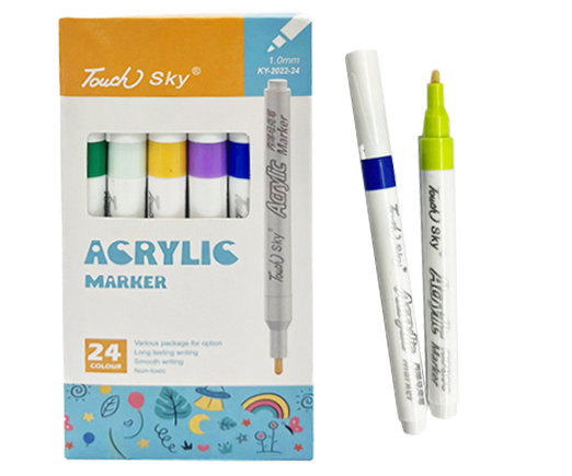 Маркер акриловый 24 цв. KY-24 1.0мм, пулевидный, белый круглый корпус, в к/кор KY-2022 (1/60)