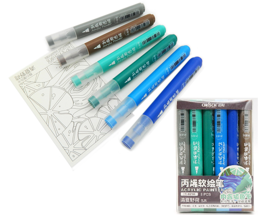 Маркер акриловый 6 цв. CY-87 "Цвет растений" 1-6мм, кисть, трехгранный корпус, в упаковке ПВХ CS-H810 (1/18/216)