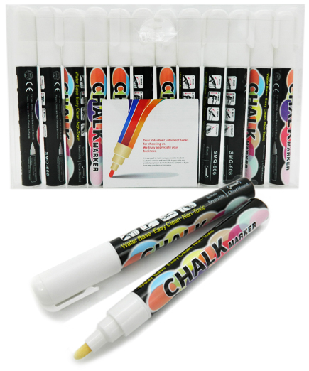 Маркер меловой 1 цв. CZ-151 "Белый" 6мм, овальный/скошенный, в ПВХ №SMQ-606 (12/600)