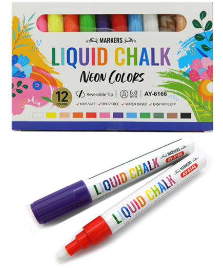 Маркер меловой 12 цв. DC-325/CZ-152 6мм, овальный/скошенный, в к/кор AY-6166 (1/50)