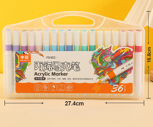 Маркер акриловый 36 цв. CZ-191 1-3мм, пулевидный, трехгранный белый корпус, в пластиковом чемодане №FD602 (1/7/42)