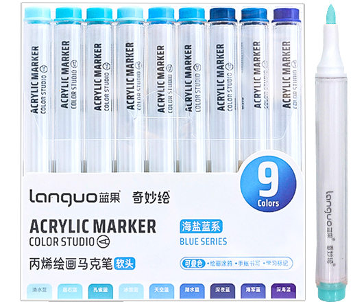 Маркер акриловый 9 цв. DD-301/LG-5 "Синие оттенки" 1-3мм, кисть, многогранный корпус, в уп ПВX M510-1 (1/48/192)