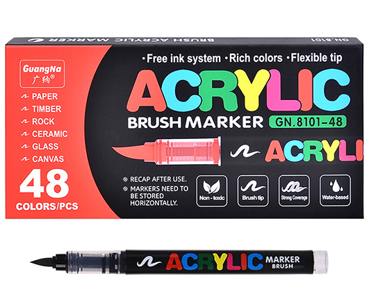 Маркер акриловый 48 цв. DG-108 1-5мм, кисть, на водной основе, круглый корпус, в пластиковом футляре FD 524-48 (1/6/24)