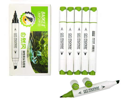 Скетч-маркер CC-22/GG012 BAOKE ЗЕЛЕНЫЙ Овальный 2х ст (острый+ скош) (6/6/6)