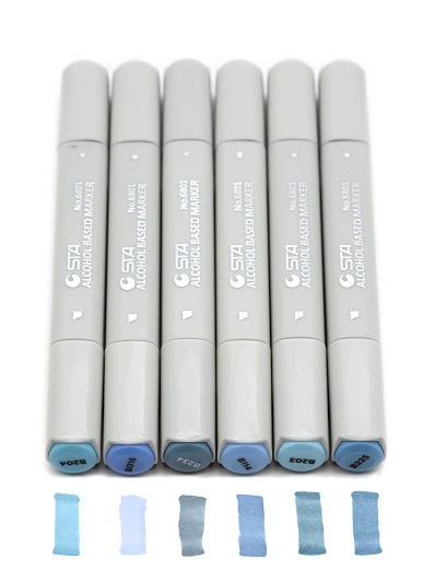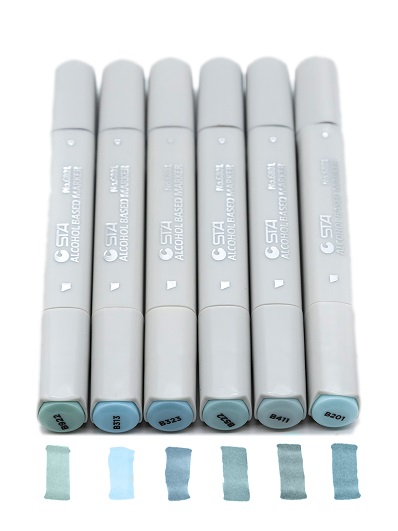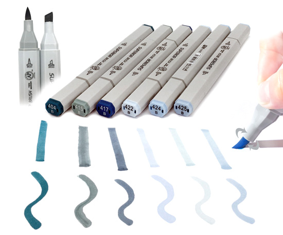 Скетч-маркеры BRUSH СС-4/41 Superior Голубые (№404B,415B,417B,422B,424B,425B) кисть+скош 6мм (6/6/48)
