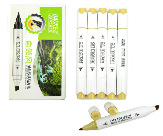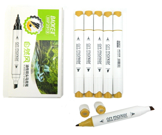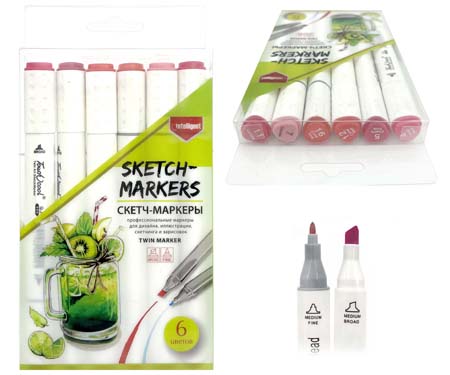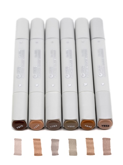 Скетч-маркеры 6шт. WST-10/9 СВЕТЛО-КОРИЧНЕВЫЕ Четырехгранный 2х ст (острый+скош) белый корпус, в упаковке ПВХ №6801 (1/1/510)