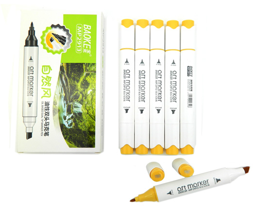 Скетч-маркер CC-22/Y024 BAOKE ЖЕЛТЫЙ Овальный 2х ст (острый+ скош) (6/6/6)