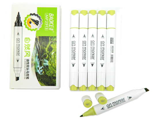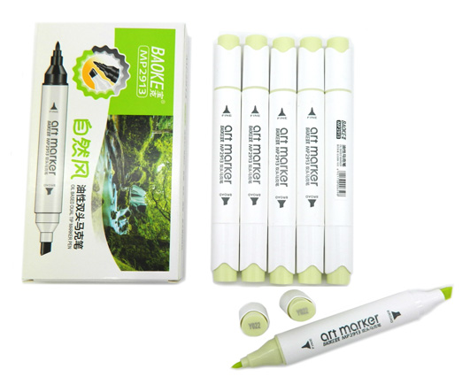 Скетч-маркер CC-22/GG003 BAOKE ЗЕЛЕНЫЙ ТРАВЯНОЙ СВЕТЛЫЙ Овальный 2х ст (острый+ скош) (6/6/6)