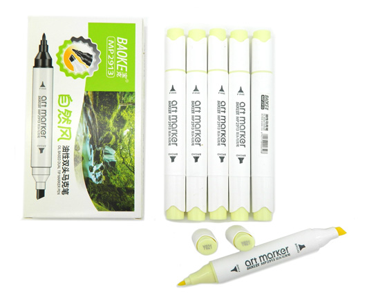 Скетч-маркер CC-22/Y017 BAOKE ЖЕЛТО-ЗЕЛЕНЫЙ СВЕТЛЫЙ Овальный 2х ст (острый+ скош) (6/6/6)