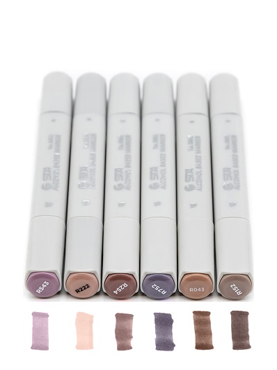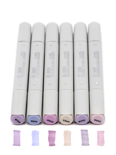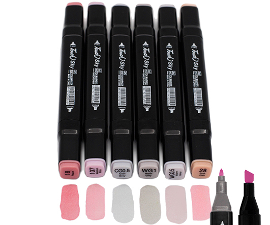 Скетч-маркеры 6шт. CH-1220 РОЗОВО-СЕРЫЕ (18, 28, 137, WG0.5, WG1, CG0.5) Квадратный 2х ст (острый+скош) черный корпус (1/1772)