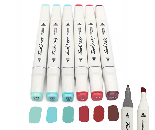 Скетч-маркеры 6шт. CH-1198 КРАСНО-ЗЕЛЕНЫЕ (2,5,15, 171, 178, 179) Квадратный 2х ст (острый+скош) белый корпус (1/1772)