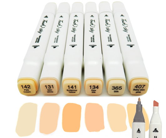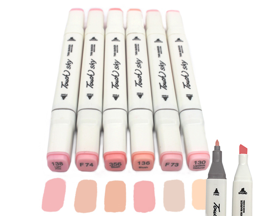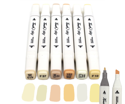 Скетч-маркеры 6шт. CH-1214 ТЕЛЕСНЫЕ (134, 152, 373, 413, F10, F37) Квадратный 2х ст (острый+скош) белый корпус (1/1772)