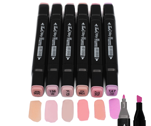 Скетч-маркеры 6шт. CH-1211 РОЗОВЫЕ (130, 136, 138, 356, F73, F74) Квадратный 2х ст (острый+скош) белый корпус (1/1772)
