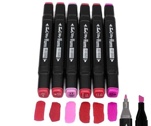 Скетч-маркеры 6шт. CH-1221 КРАСНО-РОЗОВЫЕ (4, 5, 6, 10, 15, 17) Квадратные 2х ст (острый+скош) черный корпус (1/1772)