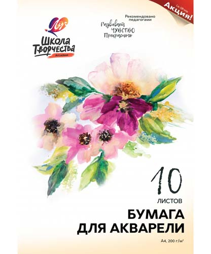 Бумага для акварели А4 10л ЛУЧ "Школа творчества" 200г/м2 в папке 30С 1797-08 (1/20)