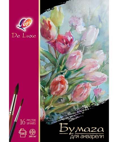 Бумага для акварели А4 16л ЛУЧ "ЛЮКС" 200г/м2 в папке 32С 2079-08 (1/15)
