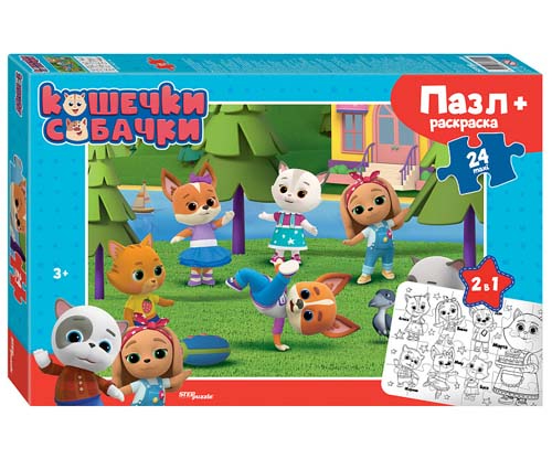 Пазл 24 деталей Maxi "Кошечки и собачки" + раскраска 66001 Степ Пазл (1/12)