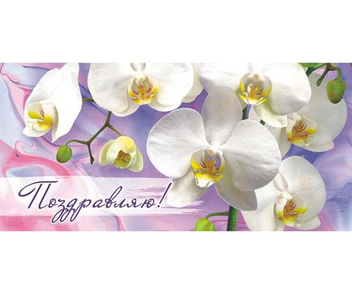 Конверт д/денег подарочный ЛиС "Поздравляю" (орхидеи) ОКЛ-156 (10)