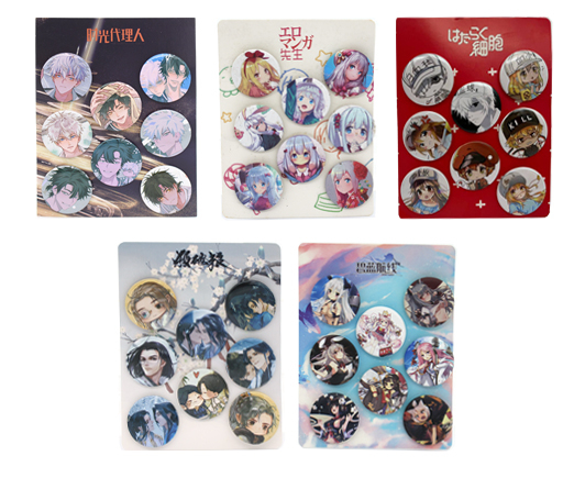 Значки JX-4 "Аниме 2" круглые, диаметр 45мм, пластик, цвета ассорти, в ПВХ-пакете (10/1000)