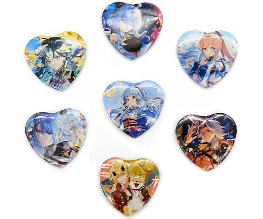 Значки JX-2 "Аниме персонажи" сердечки, диаметр 55мм, цвета ассорти, в ПВХ-пакете (10/1000)