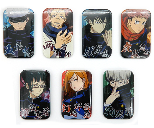 Значки JX-1 "Аниме персонажи" прямоугольные, размер 70х40мм, цвета ассорти, в ПВХ-пакете (10/1000)