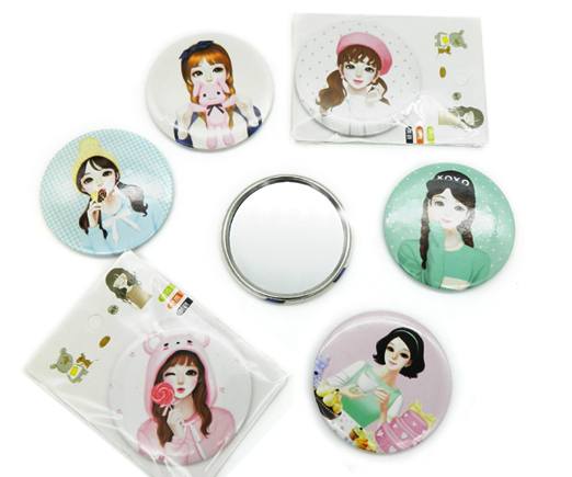 Сувенир-зеркало карманное JX-6 "Красотка" диаметр 7см, цвета ассорти, в ПВХ-пакете SK-MC336 (20/1000)