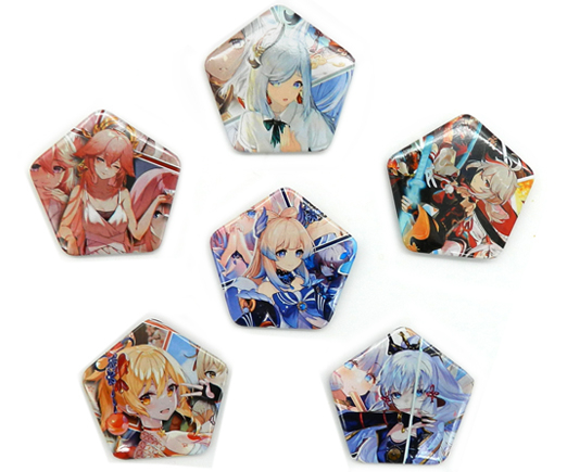 Значки JX-9 "Аниме персонажи" пятиугольные, диаметр 60мм, цвета ассорти, в ПВХ-пакете (10/1000)