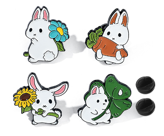 Значки DC-384/DB-102 "Зайчик" 4 ШТУКИ металл, цвета ассорти, на подложке, в ПВХ-пакете (1/20/1100)