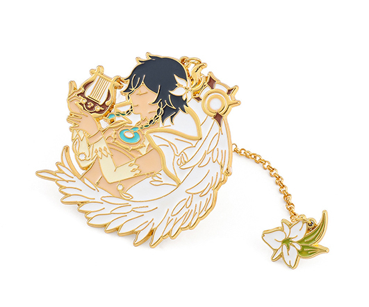 Значки DC-375 "Ангел с арфой"с подвеской, металл, цветная эмаль, на подложке, в ПВХ-пакете (1/20/100)