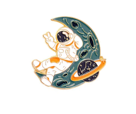 Значки DC-407 "Космонавт на Луне" металл, цветная эмаль, размер 30*30 мм (1/200)
