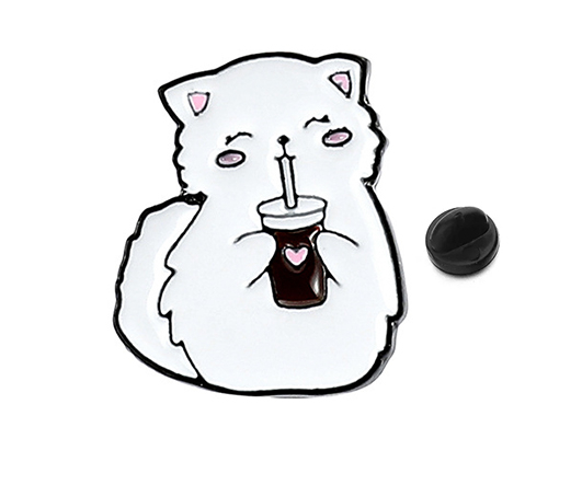 Значки DC-410 "Котик с напитком" металл, цветная эмаль, размер 25*22 мм (1/200)