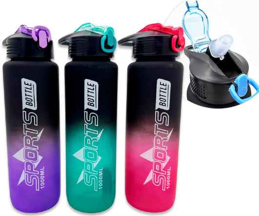 Бутылка для воды DN-193 1000мл, 27х7,5см, пластиковая, ремешок, пластиковая ручка, градиент, ассорти (1/80)