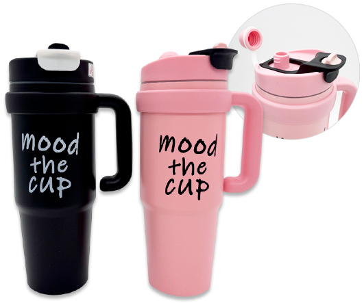 Термокружка DN-197 800мл, 25х8см "Mood the cup" нержавеющая сталь, с трубочкой и силиконовыми насадками для питья (1/40)