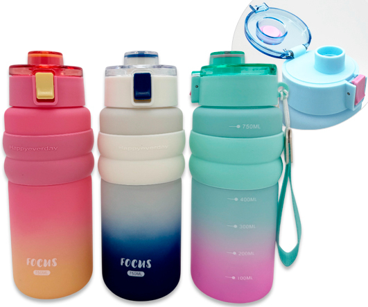 Бутылка для воды DN-199 750мл, 22х7,5см, пластиковая, с ремешком, градиент, ассорти (1/80)