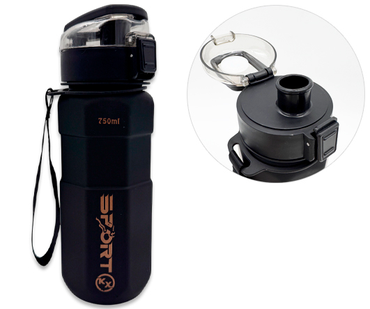 Бутылка для воды DN-203 750мл, 22,5х7см, черный матовый пластик, с ремешком (1/100)