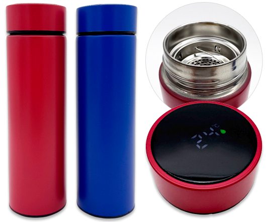 Термос DN-204 500мл, 22х6,5см, сталь, с датчиком температуры, с ситечком, ассорти (1/50)
