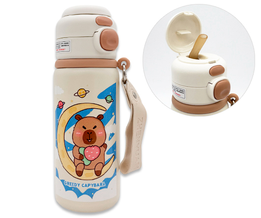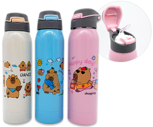 Бутылка для воды DN-206 "Термо" 500мл, 25х6,5см, сталь, с ремешком, ассорти с рисунком, в к/к CBH6473 (1/50)
