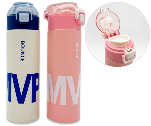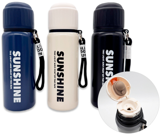 Бутылка для воды DN-211 "Термо" 500мл, 20х7см, сталь, с пластиковой кружкой, ремешком, ассорти, в к/к (1/50)