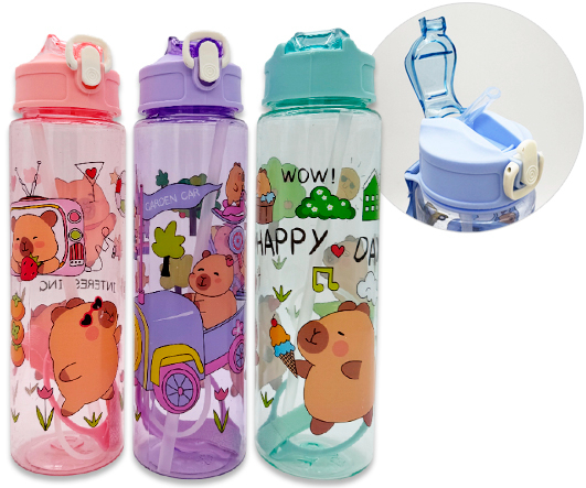 Бутылка для воды DN-209 750мл, 25х7см, пластик, ремешок, прозрачный с рисунком, ассорти (1/100)