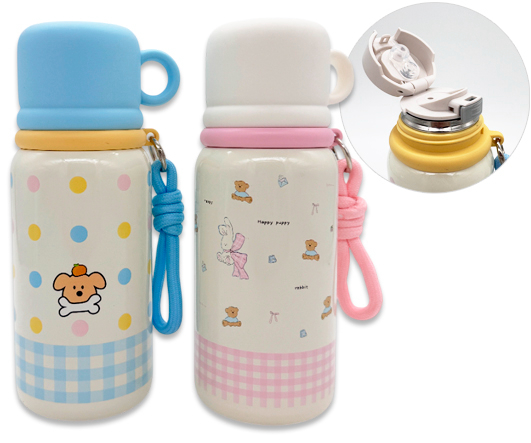 Бутылка для воды DN-210 "Термо" 500мл, 21х6,8см, сталь, с ремешком, ассорти с рисунком, к/к (1/50)