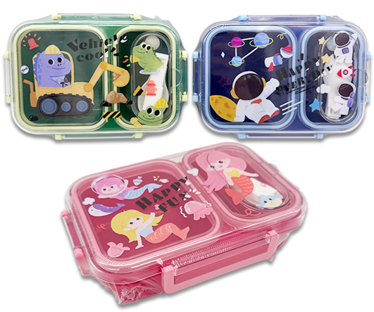 Контейнер DN-217 "Ланч бокс" с крышкой, 2отделения, 3 секций, ложка и вилка, пластик, 1200мл, ассорти (1/48)