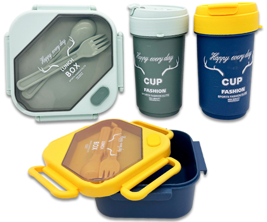 Контейнер DN-215 "Ланч бокс с бутылкой" с крышкой, 1отделение, 1 секция, ложка и вилка, пластик, 900мл (1/48)
