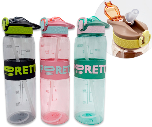 Бутылка для воды DN-221 1000мл 27х7,5см, пластик, с ремешком, ассорти (1/80)