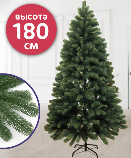 Новогодняя Елка 1,80м. DL-381/DG-349 Напольная, литая, шарнирное крепление веток, сборная, в к/кор (1)