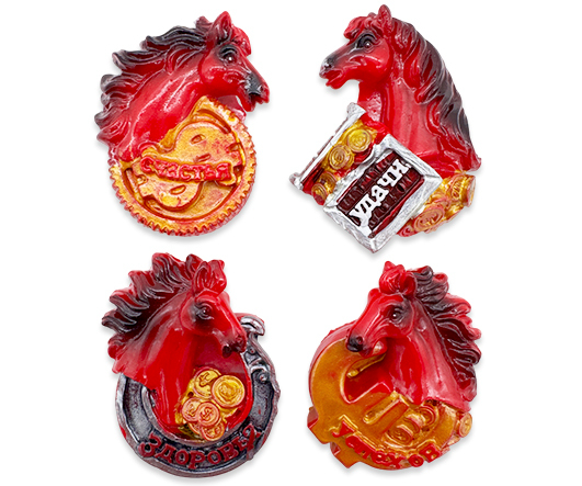 Новогодний магнит DM-317 "Лошадь" знак зодиака, 6х4,5см, ассорти, в к/к (24/720)