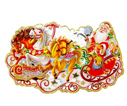 Новогодний постер BG-264 "Тройка лошадей" 34 см (1/600)