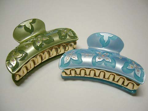 Заколка-краб АР-18 цвет металлик с цветочками в ассорт. 8,5см овальн.край (12/600)